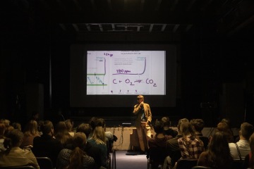 ŠKOLNÍ PROGRAM O KLIMATICKÉ ZMĚNĚ: Středoškoláci v rámci vlastního vyučování přijdou na naši besedu o možných řešení klimatické změny. Na tomto konceptu spolupracujeme také s Divadlem Husa na provázku.